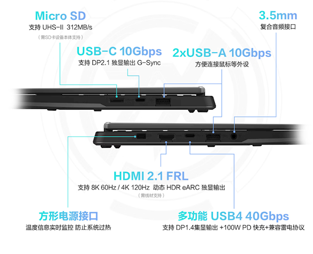 另外,天选Air 2026还配备了73Whr大容量电池(续航可超14个小时)、200W快充电源适配器(减重35g)、HDMI 2.1+USB4 40Gbps+USB-C 10Gbps+两个USB-A+microSD读卡器全接口、杜比全景声双立体扬声器。