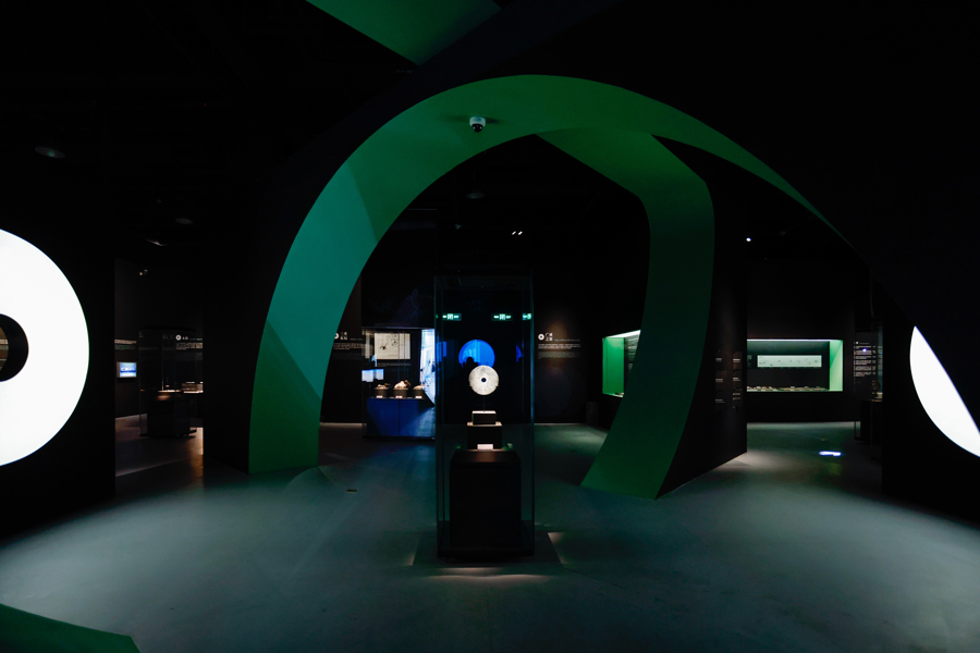 粮食的盈余滋养了人口的繁荣,协作的网络连接起广袤的土地,社会的结构便开始了深刻的变革。展厅中,快轮技术打造的黑陶纹饰繁复,漆木器的红黑配色与多层髹漆工艺可媲美后世战国珍品,以骨为材料切割、打磨而成的骨针、骨凿等甚是精美,5000年前手作的木陀螺与今日所见极为相似……这些,无不彰显着彼时手工业的专业化。