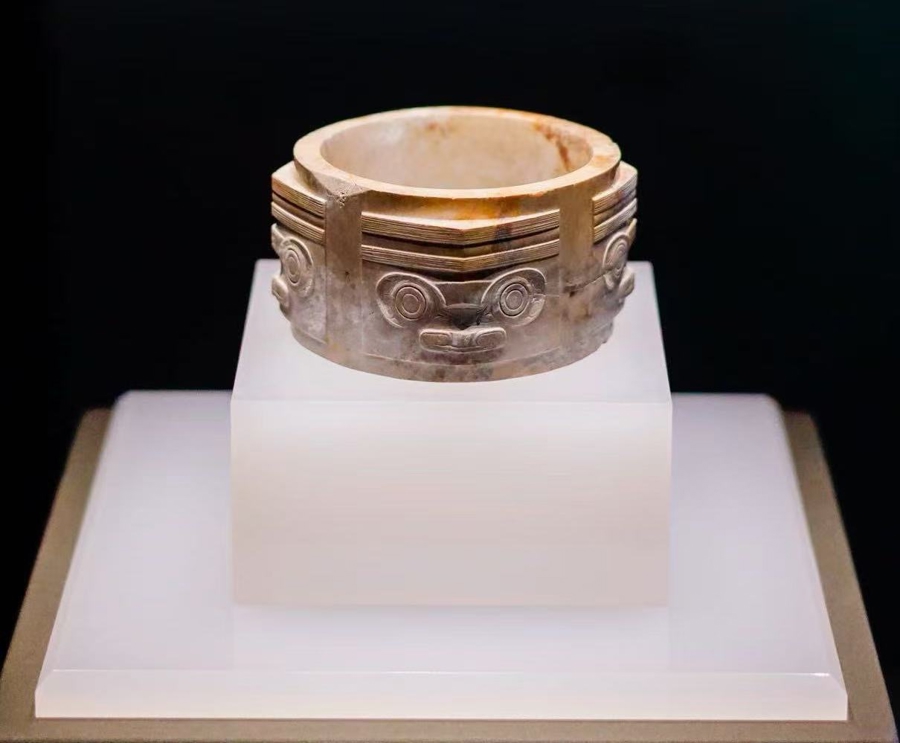 记者注意到,多件不同形制的玉器上出现了神人兽面纹。这一纹饰是良渚人精神信仰的集中体现,几乎是绝大多数良渚玉器图案的母题。相同的图像背后,既体现了工匠群体的技艺传承,也彰显了超越地域的文化认同,成为东亚早期文明的重要实证。而以玉载道的信仰,也让玉为美德的内核,成为中华文明延续数千年的精神基因。