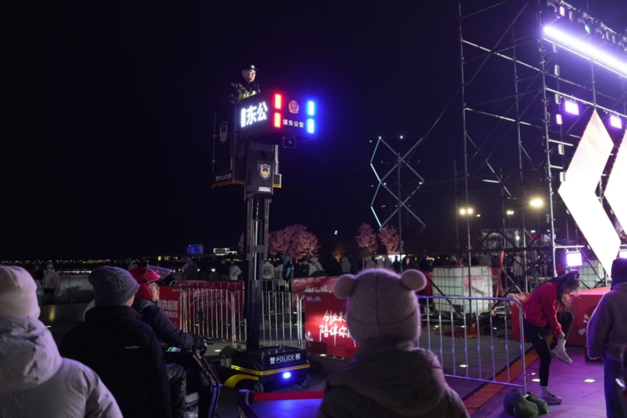 从元旦清晨迎接第一缕阳光的迎新奔跑,到夜晚8时点亮夜空的光影烟花,2026年首日,浦东滴水湖畔的两场大型活动吸引了上万市民。浦东警方提前谋划、一体部署,通过制定缜密方案、排查风险隐患、科学管控交通,实现了对两项大型活动的全链条、无缝隙安全护航,确保市民在平安有序的环境中喜迎新年。值得一提的是,新型警用升降车首次助力浦东的大型活动安保工作,相当于在高空设置了一双“智慧眼睛”。