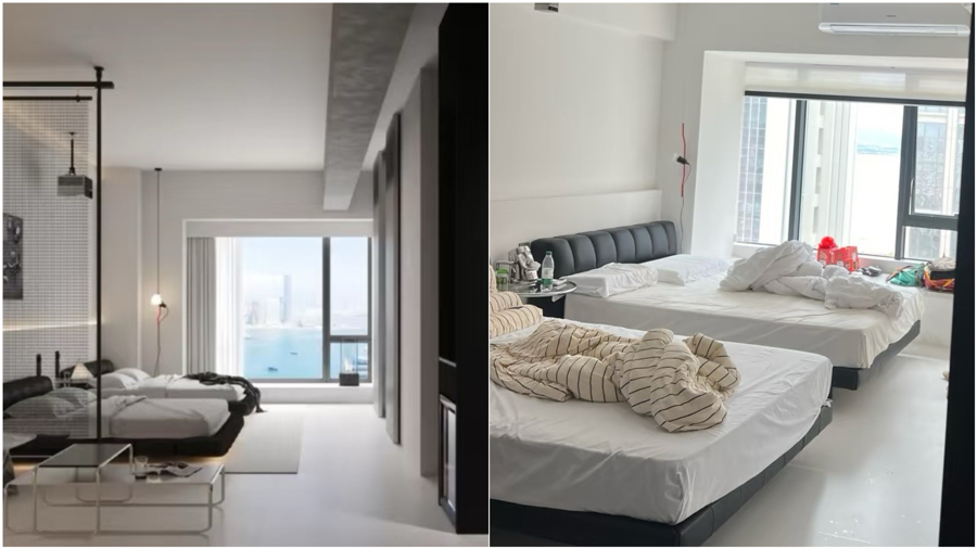 左图为房东发布在线上预订平台的房间图,右图为入住时拍摄的实景图(采访对象提供)