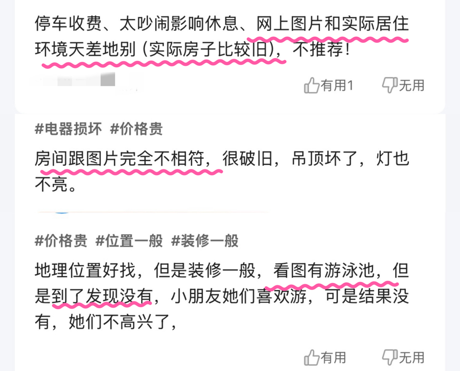 在OTA平台的消费者评价中,出现很多针对民宿“照片”反馈(网络截屏)